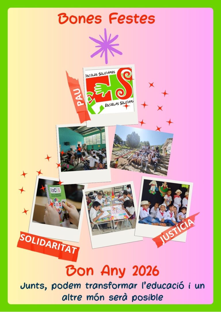 Per a infantil i primària, Escoles Solidàries va proposar L’arbre dels desitjos, una activitat participativa i creativa en què l’alumnat escrivia un desig per a millorar el món, relacionat amb la pau, la igualtat, el medi ambient o la solidaritat, i el penjaven en un arbre col·lectiu. El resultat final va ser un arbre ple d’esperances i compromisos, símbol de les veus i voluntats de les noves generacions.